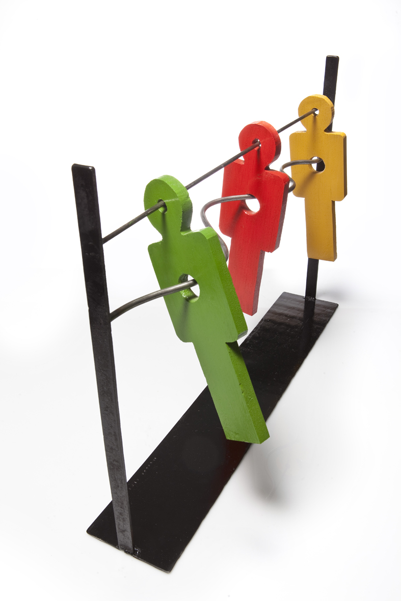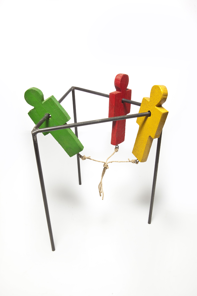 Τα υλικά αυτά υπήρχαν ως απόθεμα στο εργαστήριο του. Η ανακυκλώσιμη αυτή προσπάθεια έγινε σαν αναφορά στα ελληνικά πανηγυριώτικα παιχνίδια του 1950 που έγινε κατά κόρων η κατασκευή τους βιομηχανικά ή βιοτεχνικά από ανακύκλωση άλλων ντενεκεδένιων αντικειμένων για πρώτη φορά. Γι’ αυτό και βάφει τα γλυπτά του με τα χρώματα που χρησιμοποιούσαν στα παιχνίδια εκείνα. Κι αν τώρα έχουμε την δυνατότητα να υλοποιούμε επιθυμίες κι όχι να ακολουθούμε αποκλειστικά ανάγκες, τότε αυτό ήταν όνειρο.